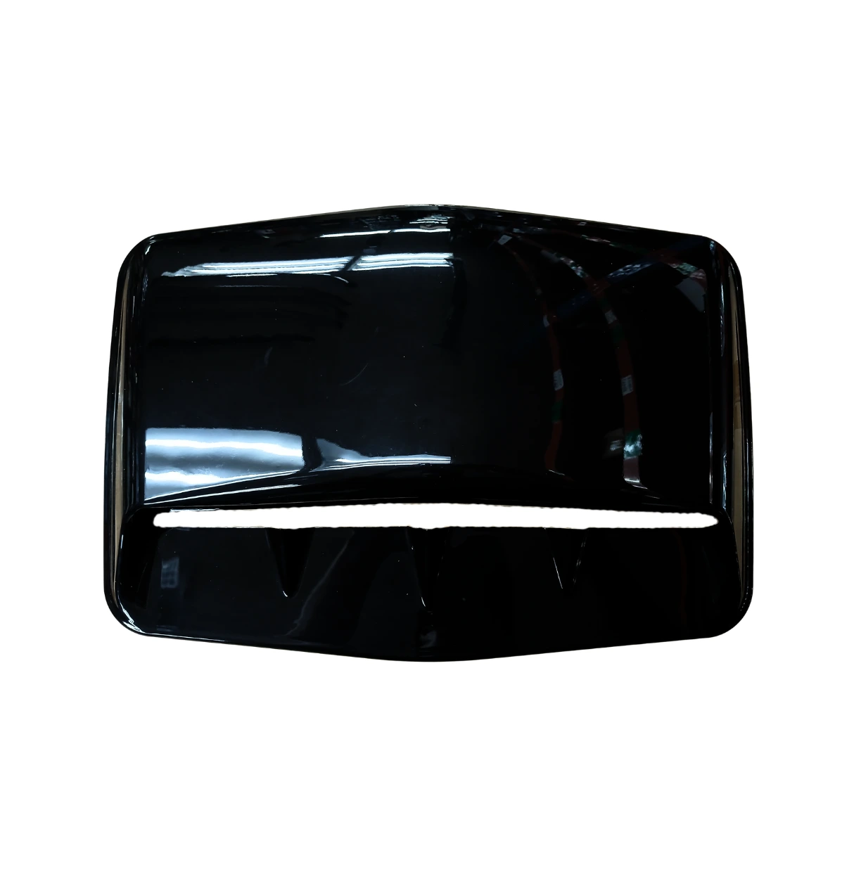 Entrada de aire simulada para cofre/capó con acabado «Negro Piano» (Glossy Black). Diseño aerodinámico ancho que le da un aspecto agresivo y deportivo a cualquier vehículo. Fabricada en plástico ABS de grado automotriz resistente al sol. Instalación sencilla mediante adhesivo fuerte (tipo 3M), sin perforaciones ni daños a la pintura.